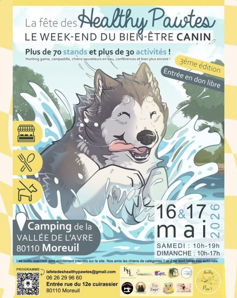 La fête des Healthy Paws me fait confiance pour une troisième année consécutive et c’est pour moi un grand plaisir. C’est un salon en extérieur avec des nombreux aménagements pour prioriser le confort des chiens. Je donnerai une conférence à 10H30 le samedi 16 mai ainsi que 2 ateliers.